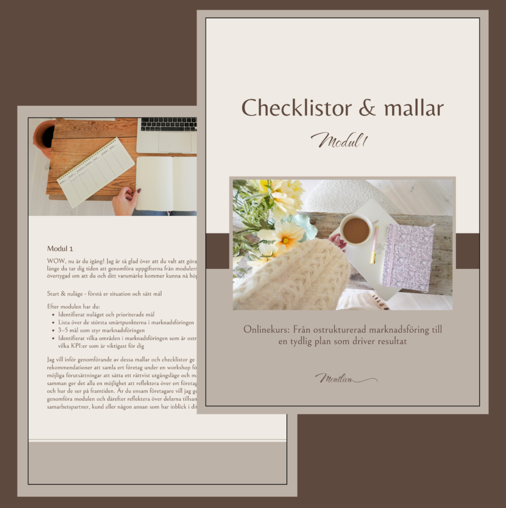 Är du redo att lyckas med ditt varumärke och nå flera kunder? Med vår onlinekurs bygger du en marknadsplan som fungerar steg för steg, med mallar och verktyg som gör det enkelt att prioritera, följa upp och få resultat.